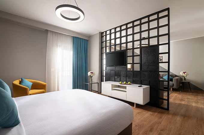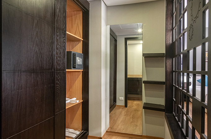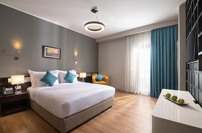 Stylish in their simplicity and decadent in details, our modern Executive suites are perfect for those who want to experience the city vibe in style—divided into two sections, one for the comfortable king-size bed and another partition for a living area that includes a working space and TV.